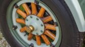 Wood-spoke artillery wheels, wood-rim steering wheel and external sun visor