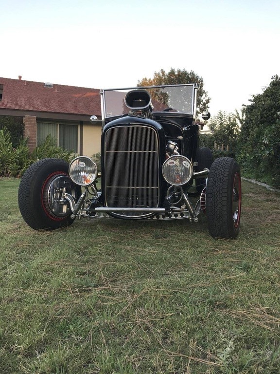 If you have ever wanted a true, steel-bodied 1929 Ford Model A Roadster with a blown Chrysler Hemi, look no further! The body is a Brookville '29 all-steel roadster body, with a functional rumble seat, sitting on a boxed '32 frame by American Stampings. The body, frame, and radiator cowl are coated in nine quarts of high-gloss black, while the wheels, engine, and transmission are painted a high-gloss red. The front axle is chromed, dropped, drilled, and highlighted…