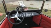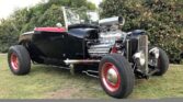 If you have ever wanted a true, steel-bodied 1929 Ford Model A Roadster with a blown Chrysler Hemi, look no further! The body is a Brookville ’29 all-steel roadster body, with a functional rumble seat, sitting on a boxed ’32 frame by American Stampings. The body, frame, and radiator cowl are coated in nine quarts of high-gloss black, while the wheels, engine, and transmission are painted a high-gloss red. The front axle is chromed, dropped, drilled, and highlighted with painted accents. The wheels are 1940 Ford-style by WheelSmith, with polished hubcaps and beauty rings, capped with Kelly Tires.