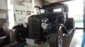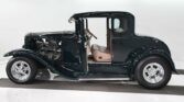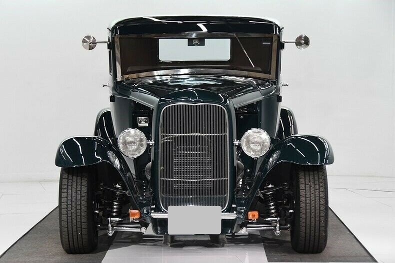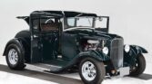 EXTERIOR: Very authentic looking 5 window with rain gutters, overlapping doors, door handles, working cowl vent, chrome windshield frame and a 32 grill shell. Has full fenders and running boards. Ram Rod body using thick fiberglass and a steel structure. Fits real nice, doors shut easy. Has chopped top, roll pan in back, recessed license plate, 3rd brake light, custom fuel filler door and the trunk lid is power. Painted in a glossy PPG acrylic urethane Brittish Racing green. Includes extra touch up paint. Unique features include a power cowl vent and power windows including the rear window. Has tear drop taillights with blue dots. Classic Cragar wheels are 14×6 in front, 15×8 in back. Very handsome, classic hot rod.