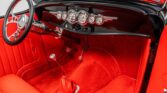 This 1932 Ford Highboy Roadster features a 350ci V8 with Turbo 350 automatic transmission and Edelbrock dual carbs. Finished in black over red, it includes a high-quality fiberglass body, red leather interior, Auto Meter gauges, and Lokar shifter. Built with a dropped axle front end, Currie 9” rear, QA1 coilovers, and Wilwood brakes. A timeless hot rod with premium components and standout style.