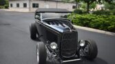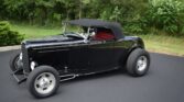 Exterior is finished in black with custom hand painted pin striping. The custom red leather interior was done by “The Sticher” Ron Mangus, and accented by an Auburn style dash. This iconic 1932 Ford roadster is quality from cosmetics through the mechanics, and drives easily just as a high end street rod should.