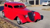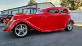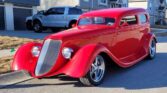 1933 Ford 3 Window Tudor Coupe For Sale.302 Ford V8 With A Mild Cam And Sounds Perfect,4 Speed C4 Manual Transmission, Boyd Cottington Wheels, 17″ Up Front And 18″ In The Rear, 4 Wheel Disc Brakes, 9″ Curry Rear End,Beautiful Undercarriage, All Leather Custom Interior, Classic Gauges, Tilt Steering Wheel, 4 Wheel Disc Brakes, Custom Sony Stereo