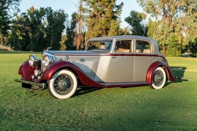 Pleased to offer this lovely 1936 Bentley 4 1/4 litre saloon. Offered here is a fitting example of Bentley s heritage that has previously been fully restored and further meticulously maintained. We just completed a full service and inspection. Most Derby Bentleys from this era were built with Park Ward bodies, only 16 Cockshoot designs were built making this even more rare indeed. The 4 1/4 litre comes with an inline 6 cylinder twin SU carburetors rated at 126hp and four speed manual gear box. This example comes with a silver painted body and burgundy fender paint scheme with matching burgundy painted belt line. Inside you find a leather interior with the finest Burr Walnut wood veneers through out. Engine compartment is neat, tidy and well sorted. Drives excellent and currently rides on wide whitewall tires mounted to contrasting gray wire spoke wheels