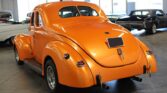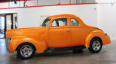 This 1940 Ford Deluxe is a stunning 2-door business coupe with Lamborghini Orange paint and custom white vinyl interior. Powered by a ZZ4 350 V8 with automatic transmission, it features Vintage AC, power steering, front disc brakes, Halibrand wheels, and a premium sound system. This ultra-clean classic offers smooth driving, great curb appeal, and impressive performance.