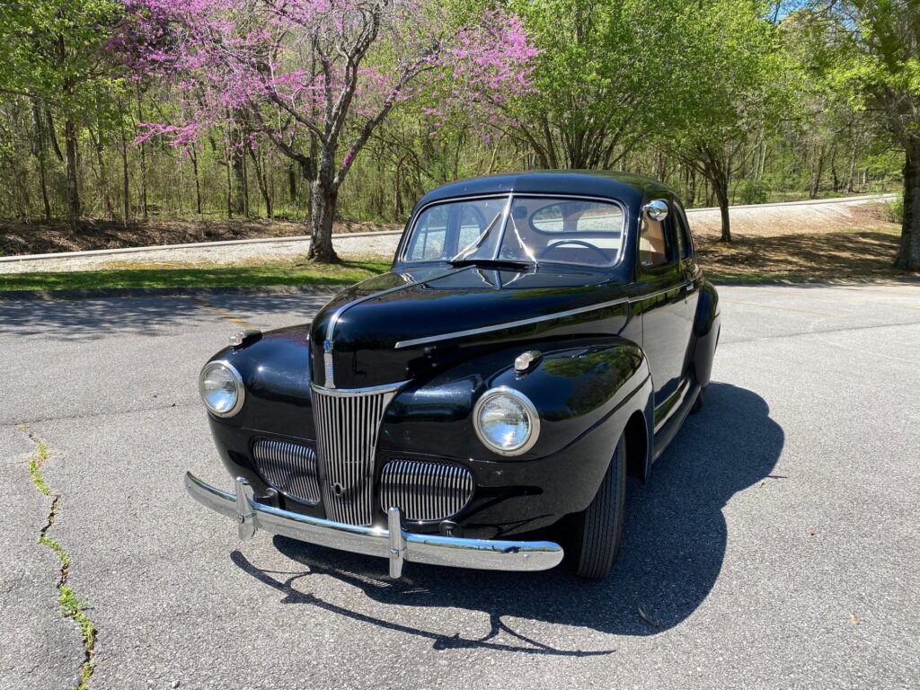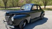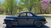 Check out this 1941 Ford Business Coupe and you may start to do Moonshine runs again. The 1941 Ford looks all stock but has some interesting upgrades that make it a really good driver with a lot of performance. She is powered by a ’51 Flathead V8 8BA block with a Mercury crank and a .100 overbore making it a 271cui engine. Adjustable lifters, an Isky 400 Jr cam, aluminum heads and three Stromberg carburetors deliver the power to a Tremec T5 5Speed transmisson and then to a brand new Quick Performance 9″ rear end with 3,50 differential. The stock front axle was dropped and the on the rear this Coupe is running a parallel leaf spring setup. The front brakes have Lincoln backing plates with self energizing drums and truck drums in the back. As you can imagine the Ford was converted to 12V, it also has working turn signals. The body and frame are in fantastic shape with no rust anywhere, the paint looks very presentable as well with some minor flaws here and there. The new interior looks and feels fantastic, and just adds to the fun of driving it. The Ford will fire right up and sounds awesome with a slightly lumpy idle that converts into a nice growl when you get on it. The 5 Speed makes it a great driver, even longer drives on the interstate are no problem. If you looking for a really good driver that has kept the old school looks and is powered by a Flathead V8 check out this one you will be amazed!