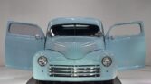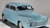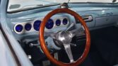 Very comfortable and roomy. 4 adults could fit in here with no trouble. The body is very straight, there’s no rust or damage. It’s had extensive custom body work. The roof was chopped 4 inches, all the chrome trim has been removed and filled. Upfront the headlights were frenched, it has custom turnsignals, the bumper was removed and the lower valance is custom. The door handles on the roof and trunk were removed and they open with a removed. In back the trunk was smoothed and opens using a cable in the fuel door. The engine bay is painted the color of the car, it has a smooth firewall. The 302 engine is rebuilt with mild performance upgrades. It has an Edelbrock intake, dual feed Holley carb and a set of headers. Dressed up with aluminum valve covers and air cleaner. The front of the motor has a Ford power steering unit, chrome alternator and a Vintage Air system. An aluminum radiator with an electric fan keeps it cool. It has an easily accessible remote oil filter.