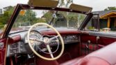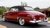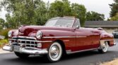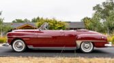 This 1950 Chrysler Windsor Highlander convertible is powered by a 251ci inline-six(116 horsepower) paired with a Fluid Drive semi-automatic transmission. Windsor convertible production amounted to 2,201 units for the model year, and the exterior of this example was repainted in the original Pepper Red. Details include a black convertible top, a chrome driver-side mirror, a vented cowl, chrome bumpers, a red top boot, and bright trim on the rockers, hood, doors, and fenders.