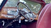 This 1950 Hudson Commodore 8 convertible is finished in dark blue with a black canvas top over a burgundy interior and is powered by a 255ci inline-eight mated to a column-shifted three-speed manual transmission with overdrive.