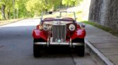 1951 MG TD Roadster in clean, corrosion-free condition with a straight body and glossy paint. Powered by a classic inline engine, this vintage British convertible runs great and presents well. Features a tan interior, newer convertible top and boot, and fresh whitewall tires. A well-kept, drivable classic MG roadster with timeless styling.
