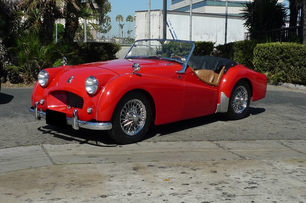 This 1953 Triumph TR2 is finished in red over tan upholstery and is powered by a 1,991cc inline-four mated to a four-speed manual transmission. Additional equipment includes fender-mounted mirrors, 15” wire wheels, rear bumperettes, a removable black soft top and tonneau cover, dual SU carburetors, and a Bosch 12-volt ignition coil. The car was reportedly refurbished during prior ownership, and work performed in preparation for the sale is said to consist of fluid flushes, rebuilds of the brake and clutch cylinders, and replacement of the tires, fuel cap, and battery.
