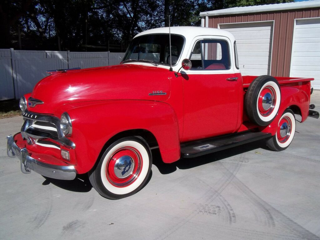 1954 Five window 3100 pickup. Older restoration with limited use since and still show very well. Runs and drive excellent and can run at highway speeds with no problem. Everything works as it should, dash lights, dash gauges, turn signals, horn, park and headlights. This was a frame off nut and bolt restoration. Has new wide whitewall tires. This truck runs so quiet you can barely here it.