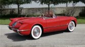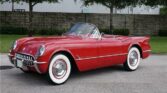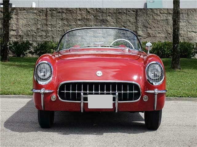 This 1954 Chevrolet Corvette is a beautifully restored and maintained classic, finished in Sportsman Red with matching red interior. Every aspect of this early Corvette shows attention to detail, from the gleaming exterior brightwork to the pristine engine compartment and impressive interior.