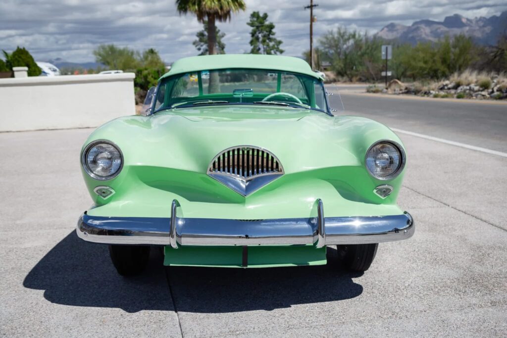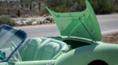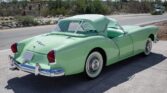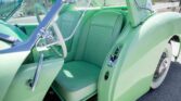 The Darrin roadster was designed by California-based coachbuilder Howard “Dutch” Darrin and was the first American production car to feature fiberglass bodywork. The car was repainted in factory Pine Tint green during the ownership and features sliding doors that retract into the body, turn signals, plexiglass wind wings, and separate decklids for the top and trunk. The color-matched three-position top features chrome landau bars and is shown in its three states in the gallery along with photos of the color-matched side curtains. Power comes from a 161ci Hurricane F-head inline-six paired with a three-speed manual transmission with overdrive.