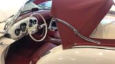 This 1954 Kaiser Darrin is 1 of 435 production examples built for a single model year, and it powered by a 161ci Hurricane F-head inline-six paired with a three-speed manual transmission with overdrive. Its fiberglass bodywork is finished in white and contrasted by a red three-position soft top and color-coordinated side curtains, and features include red upholstery, sliding doors that retract into the body, a heater, wire wheel covers, and plexiglass wind wings. The recent service included overhauls…
