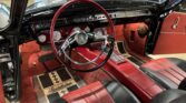 This stunning Loewy coupe is one of just 3,151 examples of the pillared Commander Regal Starlight produced for 1954. Enhancing the cars iconic styling, all handles, ornaments, and emblems were shaved for an ultra-clean look, while the original large grille bars and teeth were removed and replaced with finely crafted stainless-steel spears. Headlamp rims and taillight bezels were painted and classic Blue Dot taillight jewels were added. Power is delivered by a hot period style setup comprising a 1962-vintage small-block 283 CI V-8 engine, equipped with a Tri-Power intake mounting triple Rochester two-barrel carbs. A Chevy Powerglide 2-speed automatic transmission provides cruising ease and strong launches on command with a stall-type torque converter, while a great exhaust note comes from the full stainless Flowmaster dual exhaust system terminating with Studebaker Avanti-type exhaust tips. The interior is fully customized, while maintaining a great classic look, complete with a jet cockpit-styled 1960 Ford Thunderbird center console. Comfort is significantly upgraded with restyled 9-way power-adjustable front bucket seats liberated from a 1993 Pontiac Bonneville. Other tweaks include installation of a 1957 Studebaker President steering wheel, all new instruments, and an upgraded audio system including an AM/FM CD stereo unit, subwoofer, and 500-watt amp, with signals delivered by a frenched-in power antenna. A stunning product of a total professional build with virtually no expense spared, this classic Studebaker is totally captivating and enjoyable on every possible level, including the freshly installed set of Halibrand-style, 17-inch American Racing Salt Flat Gloss Black Kidney Bean wheels. If you love custom rides in the early- 60s style, this rare, top-quality 1954 Studebaker coupe is the ride for you. Contact us, come see it for yourself, and get ready to cruise and show this exceptional 1954 Studebaker!