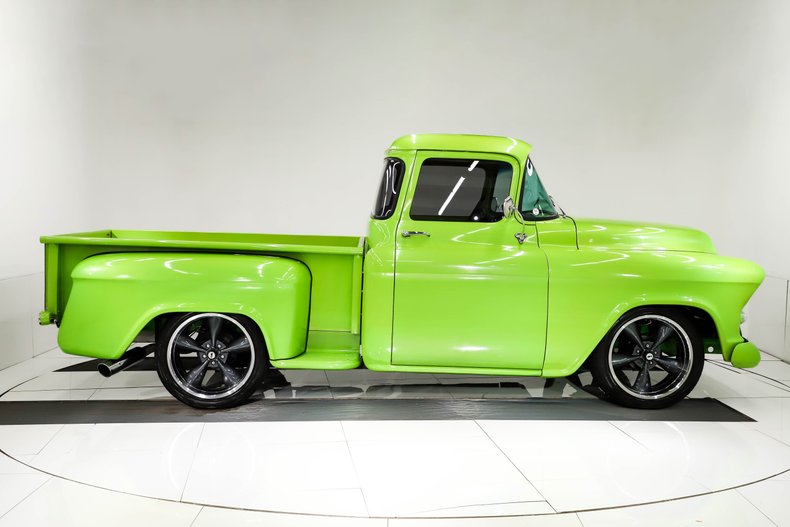Solid, straight all metal body, bed and fenders. The trim and emblems were removed and filled for a clean look. It has a relocated flush mount fuel door. Rear bumper was removed for a clean look, it is included. The sublime green color really stands out! The paint presents itself very well but has flaws. New windshield, tinted glass. The vent windows were removed for 1 piece door windows. It has the "big" back window. It rolls on…