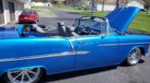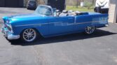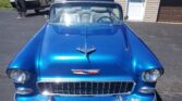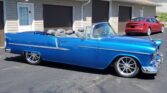 The car has been refinished in metallic blue and is equipped with chrome bumpers and trim and a matching power-operated soft top. The soft top fabric was replaced under current ownership.