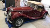This example represents the last year of MG TF production prior to the release of the MGA and features include a pair of Stayfast canvas side curtains, a spare tire, octagonal gauges, wire-wheels, and a full tan tonneau cover.