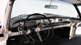 INTERIOR: Very well preserved, almost all original. Only a couple panels on the front seat have been replaced. Carpet has also been replaced. The steering wheel is pristine, no cracks. Has optional padded dash, the instruments, all the chrome knobs and bezels sparkle. Inside the glove box it has original owner’s manual in the paper pouch. Overhead the perforated headliner and visors are excellent, the dome light works. Original door panels are very nice.