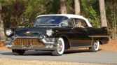 This 1957 Cadillac Series 62 convertible was the recipient of a 4,000-hour rotisserie restoration. The car was a prime candidate for restoration, being rust-free with 90,597 actual miles. It is presented in Black with correct 2-tone Red and White leather interior and show-quality chrome. The car features power steering, power seat, E-Z-Eye glass, heater and power brakes.