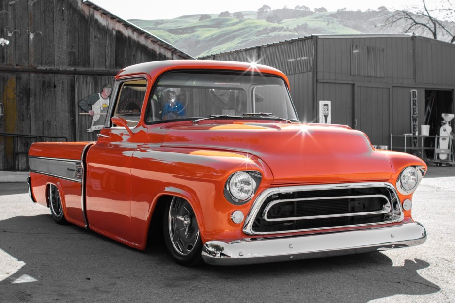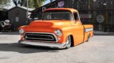This 1957 Chevrolet Cameo pickup has been refinished in orange over a tan interior with black accents and is powered by a 5.7-liter LS1 V8 paired with a 4L60E four-speed automatic transmission. The truck underwent a refurbishment prior to the seller’s acquisition in 2019, and modifications performed in 2021 are said to have included installation of a custom four-link Air Lift Performance suspension, a Holley Sniper EFI intake manifold and throttle body, a custom-built wood-lined raised bed floor,…