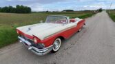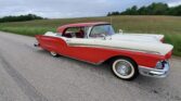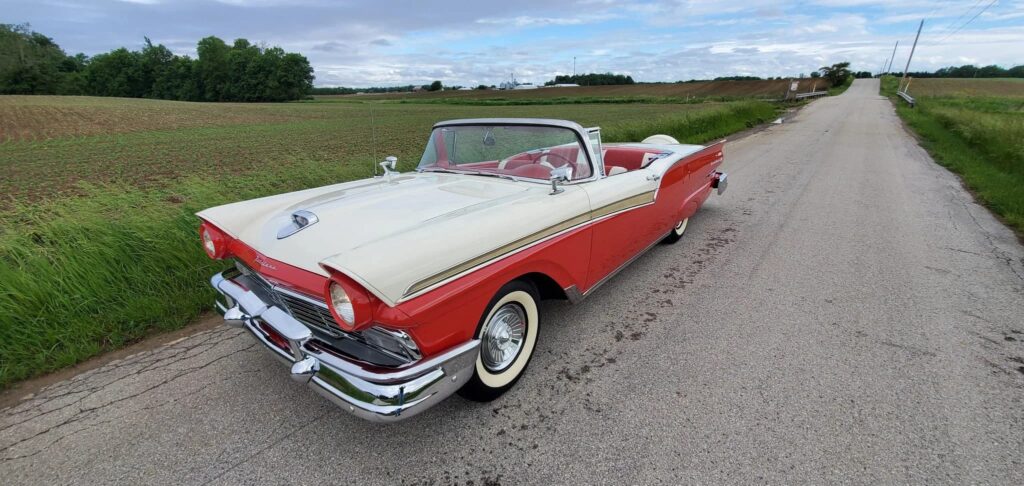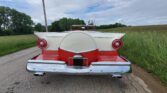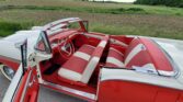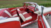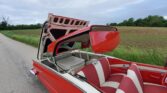 The Skyliner’s power-retractable “Hide-Away Hardtop” utilized a system of jacks, solenoids, limit switches, and locks to raise, lower, and secure the roof. Finished in red and white, this example features a front bumper guard, fender-mounted mirrors, chrome trim with gold accents, fender skirts, and an extended rear bumper housing the spare tire. The 312ci Y-block V8 is equipped with dual four-barrel carburetors and drives the rear wheels through a three-speed manual transmission with overdrive.