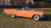 1957 Ford Thunderbird Convertible 312 V-8 Engine Automatic Transmission Rare Coral Sand Exterior over Black and White Interior Black Convertible Soft Top Wide White Wall Tires Chrome Wire Wheels Lady Driven 1 of 270 Manufactured in Coral Sand