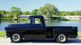 350 Cu In V8 engine, Demon 4 barrel carburetor, air gap aluminum intake, electronic ignition, dual exhaust with electric cutouts, 700R4 overdrive transmission, upgraded front suspension with rack and pinion power steering, 4 wheel disc brakes, 9 inch rear with a 3.00 posi gear, 15” American Racing Torque Thrust D Wheels with Cooper white letter tires, stunning jet black paint job on an incredibly strait Pickup Body, step side bed, wood bed floor, driver's chrome mirror, tinted glass,…