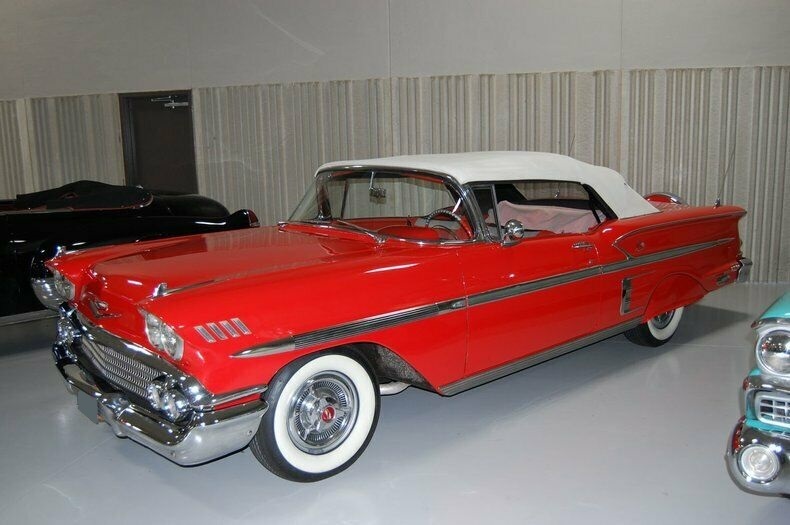 The newest look since sliced bread was the introduction of the New 1958 Impala. A totally new look for Chevrolet that is one of the strongest collector car marques going. This extremely nice Impala Convertible comes with many of the most popular options for 58. The 348 cu. in. V8 was one of the kings of the performance world with its 280 HP with the Tri-Power setup. Along with the ever reliable Powerglide transmission this car is wonderful…