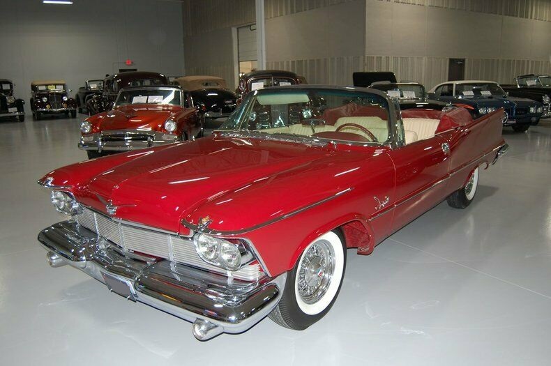A true iconic car of the 50's is this Chrysler Imperial Crown Convertible loaded with all the power options: steering, brakes, seat, windows, antenna as well as power assist convertible top. One of only 675 produced in 1958, this rare red beauty is a collectors dream. The 392 Hemi engine boasted a 345 h.p. rating and certainly had power to spare. And with the push button automatic, anyone can drive this classic. Beautifully redone cream leather interior with…