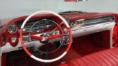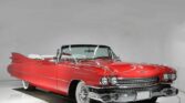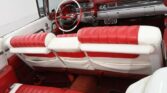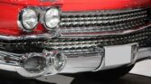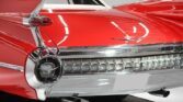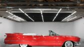 It s certainly stunning with the tallest wings ever made on a production car. The bullet tail lights, abundance of chrome body and being lipstick red will certainly get you noticed. It is restored beautifully. The car s straight from every angle, smooth along the bottoms. All the panels fit real well, doors shut like a new car. The paint is polished very smooth and glossy. The door jambs are painted very nicely, has new weather strips. All that chrome and stainless moldings shine brightly, are straight and fit the car really well. The bullets in the grill are not broken or missing.Chrome frames around the windows are excellent. It has a white fiberglass parade boot and it also has a new red soft boot. The convertible top is white, it s in excellent condition. It works and fits properly.