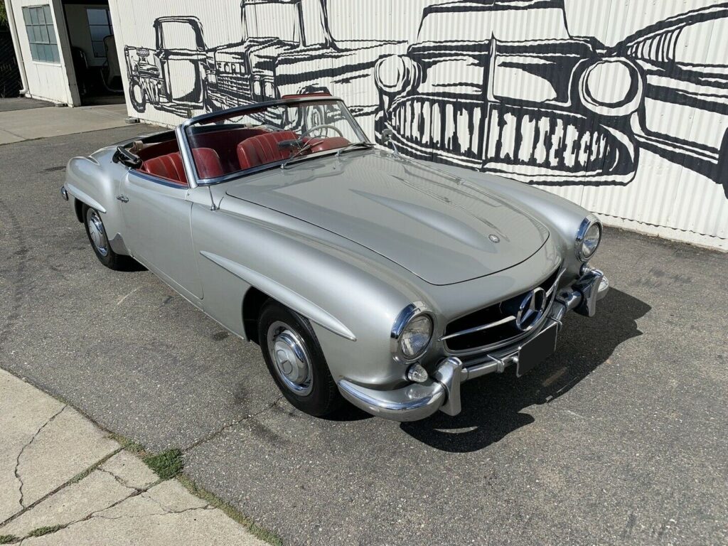 New to our showroom is this highly impressive 1959 Mercedes 190 SL 2 Door Roadster with silver exterior paint and a beautiful red leather interior. You will find a factory correct 1.9L four-cylinder engine under the hood with a four speed manual transmission.This beautiful classic had a complete overhaul of all mechanics (including re-boring of the cylinders, drivetrain, brand new brakes, etc) in the last 1000 miles. With lifetime documentation and impressive care, this 59 Mercedes is a truly gorgeous classic that will definitely stand out in one lucky collector garage.