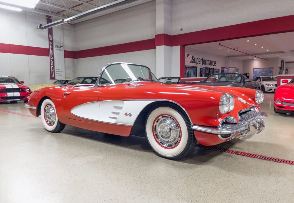 1960 Chevrolet Corvette Convertible Roman Red over Red w/White Top Vehicle Highlights: 283ci V8 Engine 4-Speed Manual Transmission Removable Hardtop Dual Exhaust