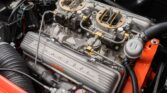 The car features a period-correct 283/245hp dual quad V8 engine so clean it serves as a display piece. The interior is as-new from the carpet up, reflecting the high standards of its documented restoration.