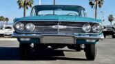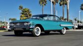 This 1960 Chevrolet Impala is powered by an upgraded 350ci V8 engine backed by a TH350 three-speed automatic transmission. Features include power steering and brakes, a Sony AM/FM/cassette stereo, and an accessory tissue dispenser.