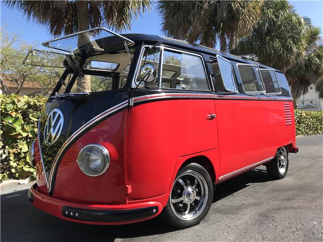 UP FOR SALE IS AN ABSOLUTELY STUNNING AND SUPER RARE VW BUS. WE ARE PROUD TO PRESENT THIS 1961 VOLKSWAGEN 23 WINDOW DELUXE SAMBA BUS VANAGON RECREATION! COMES WITH A NEW GORGEOUS 2 TONE RED BLACK EXTERIOR PAINT AND A NEW 2 TONE TAN INTERIOR. TOPPED OF WITH A NEW FULL BLACK SLIDING SUNROOF AS WELL AS ALL NEW SAFARI WINDOWS THROUGHOUT. FINISHED OFF WITH A BRAND NEW SET OF NANKANG TIRES MOUNTED ON CUSTOM FLAT4 GTV 15 inch WHEELS. IN 1949 VW DEVELOPED THE TYPE 2 SERIES. THE 1975 T1 WAS THE LAST YEAR OF THE SPLIT WINDOW MODEL ON THE BRAZILIAN PRODUCTION, MAKING IT HIGHLY SOUGHT AFTER. WITH EXPLODING VALUES OF THE T1 BUSES, THERE SHOULD BE NO HESITATION ON BUYING ONE OF THESE HEAD TURNING MACHINES. AT THE END OF THE DAY, IT IS A SMART INVESTMENT THAT WILL ALSO PROVIDE YOU WITH MANY FUN TIMES AHEAD. WITH NICE VENTILATION FROM THE SAFARI WINDOWS AND A GOOD BOOST COMING FROM THE 1500CC ENGINE, MATED TO A 4 SPEED MANUAL TRANSMISSION, THIS FUN TO DRIVE BUS WILL ACTUALLY BLOW YOUR HAIR AWAY.