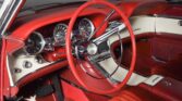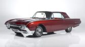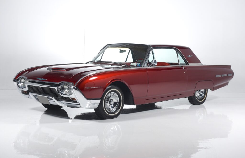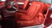 This car is listed as being Chestnut (Maroon-Brown Metallic) with a Chestnut vinyl interior. It was scheduled for production on March 9, 1962 and ordered through the Kansas City, Missouri District Sales Office. It has a 3.00:1 rear axle ratio, 390CI V8, and Cruise-O-Matic transmission. Additional equipment includes the factory AM radio, which is still in the car, power drivers seat, power windows, cold AC, and the unique Swing Away steering column. The car has been repainted and the seats have been reupholstered tastefully in red velour, which is more cool and comfortable than the original vinyl. The car has factory Turbine wheel covers and narrow white sidewall tires. The paint, chrome and interior present well, and the color combination is very flattering to this iconic Thunderbirds futuristic styling. Our Thunderbird is fully-sorted and a delight on the road. It could be described as driving as-new. Here is one of the very first Personal Luxury cars, and one that you can drive or show with pride.