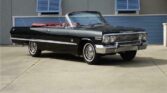 This 1963 Chevrolet Impala Convertible is the total package for the serious collector. Presented in its stunning original factory color combination of Tuxedo Black exterior over a vibrant red interior, this car commands attention. As a highly restored icon, these 409 Impala convertibles are becoming increasingly rare and continue to appreciate in value.