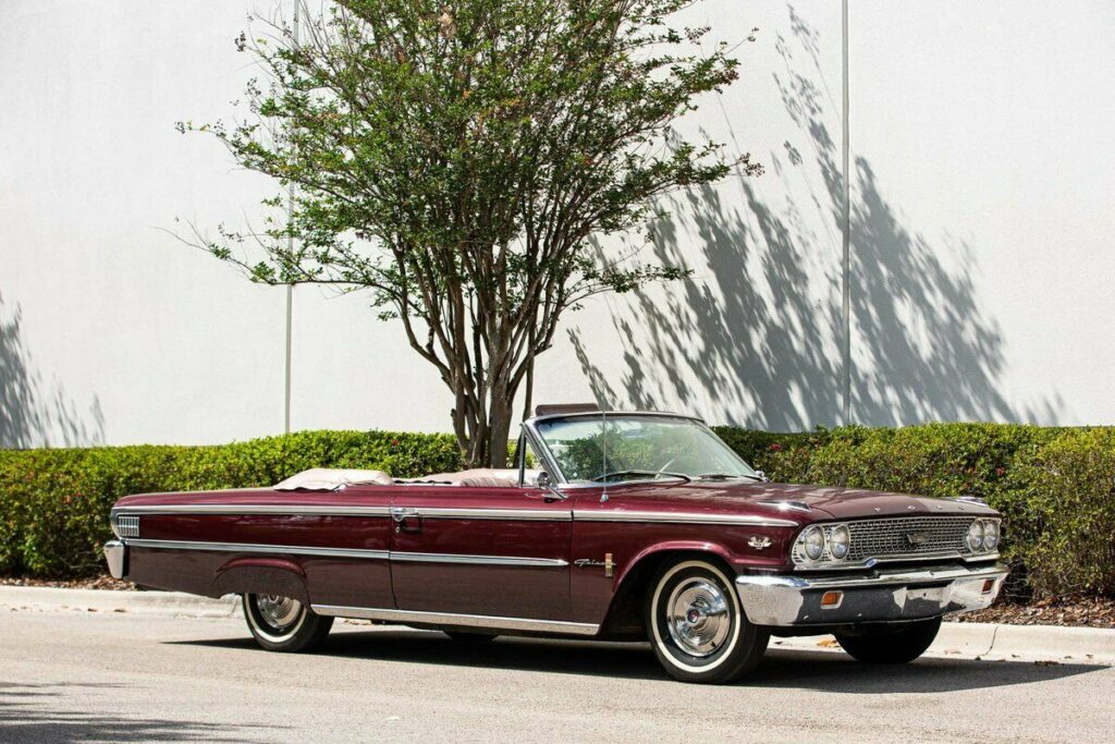 Only 28,000 miles on this extremely rare and very original “G” code Galaxie 500XL convertible. The durable 406 cubic inch V8 engine with tri-power and solid lifters is teamed to a four speed manual transmission. It’s factory rated at 405 horsepower! This engine was Fords response to Chevy’s 409. The 352/390 FE block was recast and strengthened for the 406 application with thicker cylinder walls in addition to stronger internals, cast iron headers, 2-1/2 inch exhaust, improved heads, high lift cam and as mentioned solid lifters and tri-power carburation. The compression ratio is 11.5 to 1. This may be the finest example to be found. Its had one repaint in the original color of Heritage Burgundy and the Light Rose interior is all original. The odometer indicates 28,000 miles which is stated as correct by prior ownership. Most importantly, the car condition reflects that of a low mile original car. It runs, drives and performs excellent too!