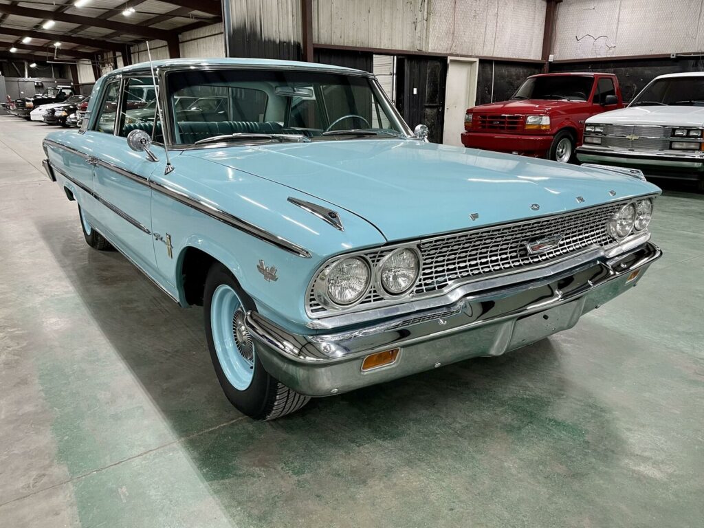 This 1963 Ford Galaxie Z-Code is a true classic muscle car featuring an excellent running 390 V8 with Edelbrock aluminum heads and dual four-barrel carburetors. Paired with a 4-speed manual transmission, this Galaxie delivers authentic 1960s performance with power steering and manual drum brakes for smooth handling.