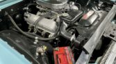 Finished in Peacock Blue paint over a factory turquoise bench-seat interior, the car rides on 15″ steel wheels with 225/70-15 tires. The ceramic headers, H-pipe, and glass pack mufflers provide the classic muscle car sound, while the Ford 9-inch rear end ensures reliable power delivery. The body is solid with no rust issues, and the odometer reads 4,191 miles (actual mileage unverified).