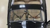 This 1963 Volkswagen Beetle is powered by a replacement 2,332cc flat-four paired with a four-speed manual transaxle and is finished in black over beige upholstery. Equipment includes aftermarket 15″ wheels, a retractable cloth roof panel, four-wheel disc brakes, dual Weber carburetors, an auxiliary oil cooler, an MSD ignition system, and reinforced transaxle bracing.