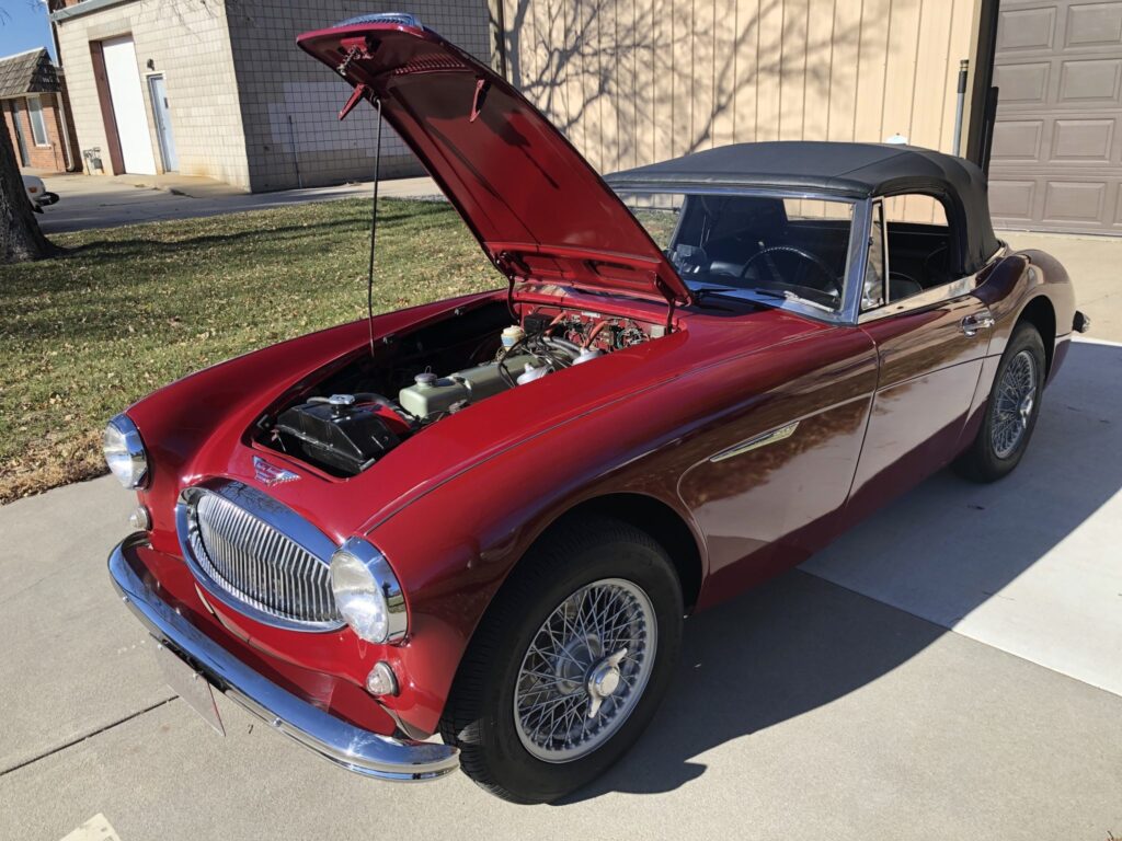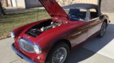 This 1964 Austin-Healey 3000 BJ8 Mk III is a four-seat convertible. The car is finished in red over over black vinyl upholstery and is powered by a 2.9-liter inline-six paired with a four-speed manual gearbox with overdrive. Equipment includes a black soft top, a wood dashboard, a heater, a stainless-steel exhaust system, and 15″ knock-off wire wheels. The dual SU carburetors, suspension, generator, starter, and radiator are said to have been rebuilt under current ownership in addition to…