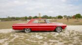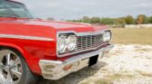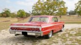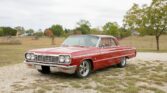 This 1964 Chevrolet Impala SS is a two-door sport coupe, built at GM’s St. Louis, MO, plant. It features a non-numbers-matching 409ci Turbo-Fire V8 engine, paired with a Muncie four-speed manual transmission. The car is finished in Red with a matching red interior.