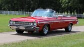 This 1964 Dodge Polara 500 Convertible features a 426 Hemi (10/1962 block) with Indy aluminum heads and dual Edelbrock carbs on a cross ram intake. Paired with an 18-spline 4-speed and Dana 60 rear (3.55 posi). Includes MSD distributor, power steering, dual exhaust with cutouts, and manual disc brakes. Clean engine bay, rust-free trunk, and straight body. Finished with a power convertible top, custom interior, AM radio, and 15″ Cragar SS wheels.