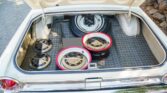 This 1964 Ford Fairlane coupe is powered by a K-code 289ci V8 paired with a four-speed manual Toploader transmission. Features include a heater, American Racing Torq-Thrust wheels, and chrome trim and bumpers. The car came factory-finished in Wimbledon White (M) and features black side spears with chrome accents and bumpers. The cabin features front bucket seats and a rear bench trimmed in turquoise vinyl with striped fabric inserts, along with a matching dashboard, door panels, and carpets. Lap belts are fitted for the front occupants, and amenities include a heater, a dome light, and ashtrays for rear seat passengers.