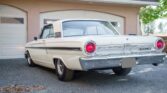 This 1964 Ford Fairlane coupe is powered by a K-code 289ci V8 paired with a four-speed manual Toploader transmission. Features include a heater, American Racing Torq-Thrust wheels, and chrome trim and bumpers. The car came factory-finished in Wimbledon White (M) and features black side spears with chrome accents and bumpers. The cabin features front bucket seats and a rear bench trimmed in turquoise vinyl with striped fabric inserts, along with a matching dashboard, door panels, and carpets. Lap…
