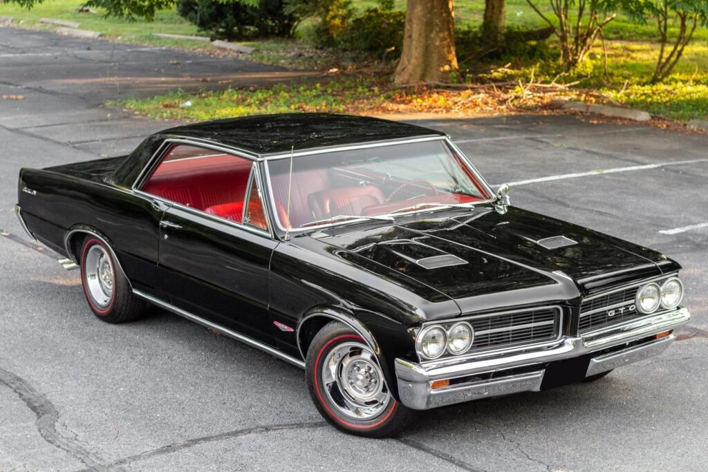 This 1964 Pontiac GTO hardtop coupe was first delivered to Colonial Pontiac of Miami, Florida, and is powered by a 389ci Tri-Power V8 paired with a four-speed manual transmission. The car is finished in black over red, and additional equipment includes silver-painted 15″ Rally I wheels, BFGoodrich redline tires, power steering, chrome bumpers, air conditioning, a center console, and a push-button AM radio. The work completed during ownership has reportedly consisted of rebuilding the transmission, replacing the clutch, installing front disc brakes, and touching up the paint on the hood, roof, and trunk lid. This hardtop GTO is offered with an owner’s manual, a reproduction window sticker, a build sheet, and a clean title in the seller’s name.