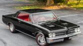 This 1964 Pontiac GTO hardtop coupe was first delivered to Colonial Pontiac of Miami, Florida, and is powered by a 389ci Tri-Power V8 paired with a four-speed manual transmission. The car is finished in black over red, and additional equipment includes silver-painted 15″ Rally I wheels, BFGoodrich redline tires, power steering, chrome bumpers, air conditioning, a center console, and a push-button AM radio. The work completed during ownership has reportedly consisted of rebuilding the transmission, replacing the clutch,…